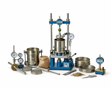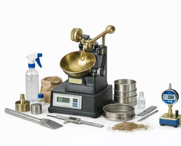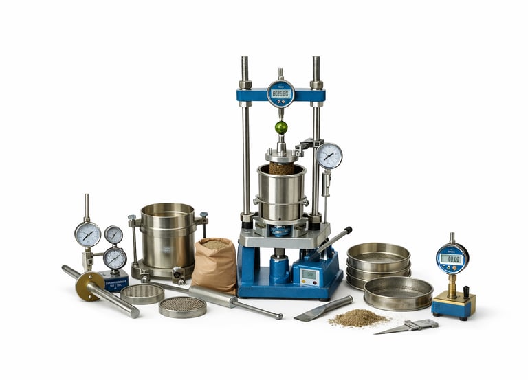 Equipos y accesorios para laboratorios técnicos de ensayo de suelos.