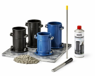 Equipamiento para moldeo y preparación de probetas para ensayos de compresión.