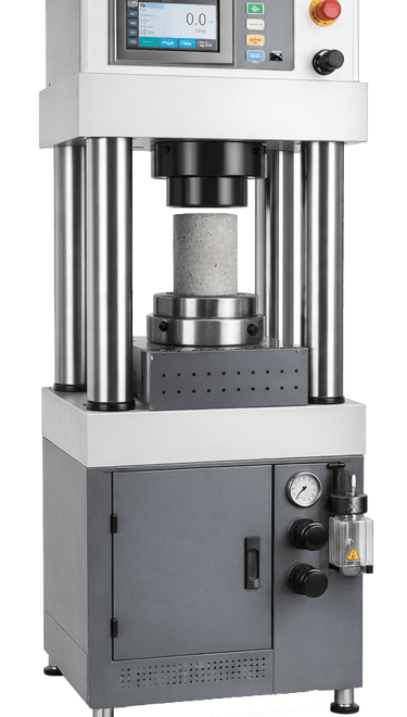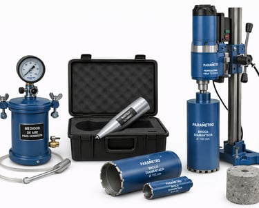 Equipamiento para evaluación de propiedades del hormigón fresco y endurecido.