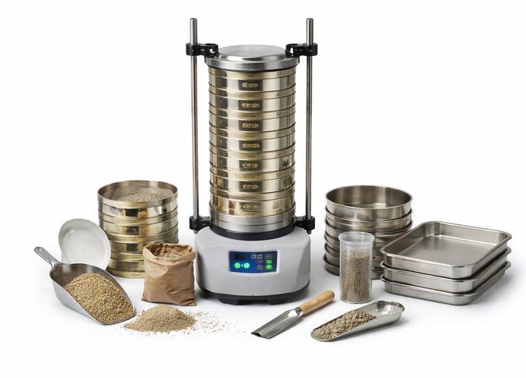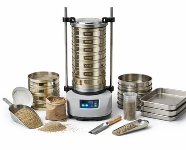 Equipamiento para análisis granulométrico de suelos mediante tamizado.