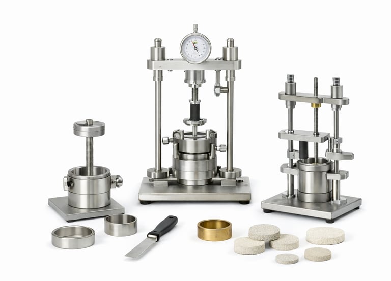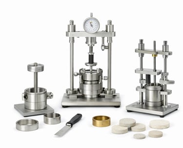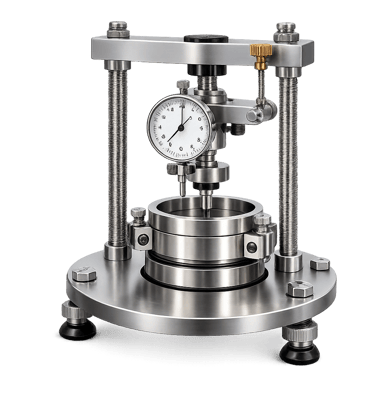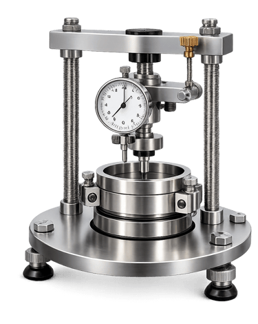 Equipamiento para determinación de asentamiento y compresibilidad de suelos mediante ensayo edométrico.