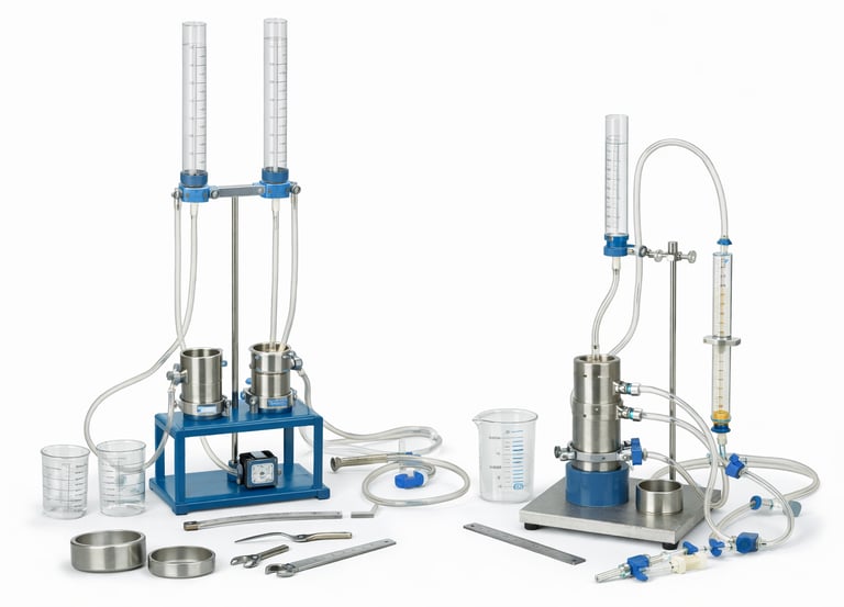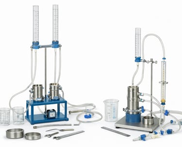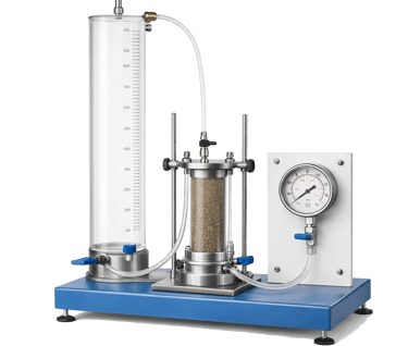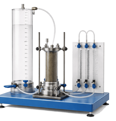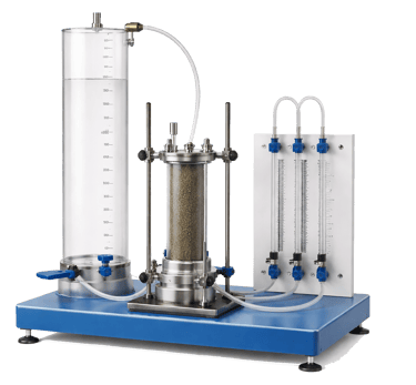 Equipamiento para determinación del flujo de agua a través de suelos en laboratorio.
