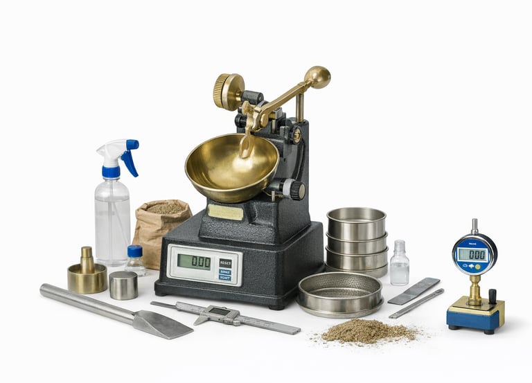 Equipamiento para determinación de los límites líquido y plástico en suelos.