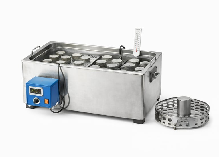 Equipamiento para conservación y curado de probetas bajo condiciones controladas.