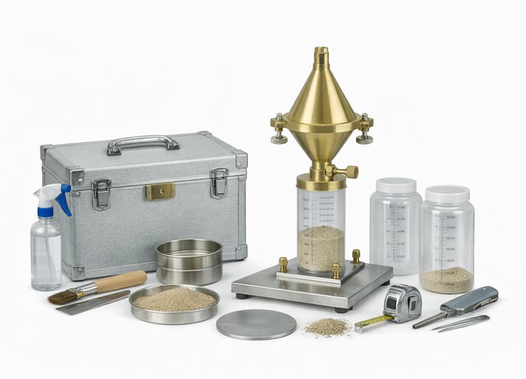 Equipamiento para determinación de densidad de suelos en campo.