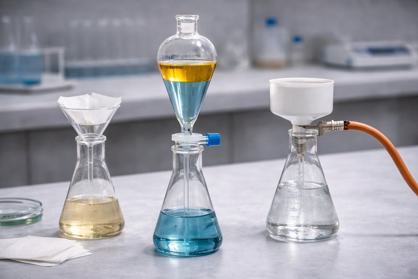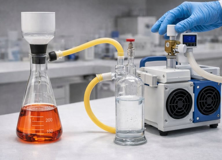Equipamiento para filtración y separación de fases mediante vacío controlado.