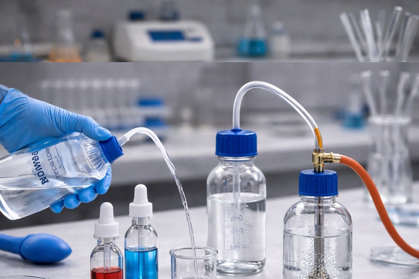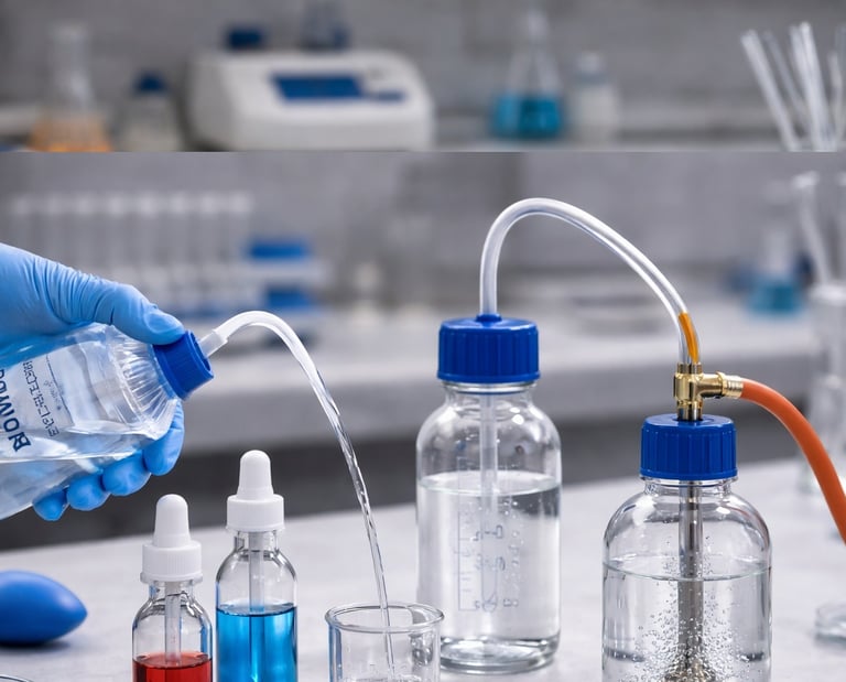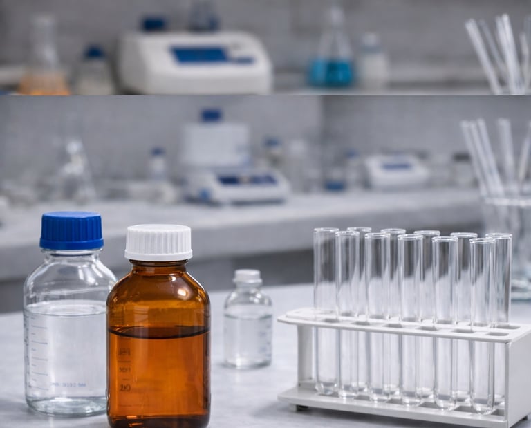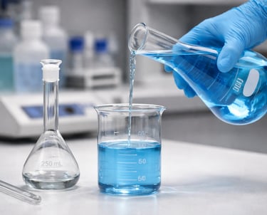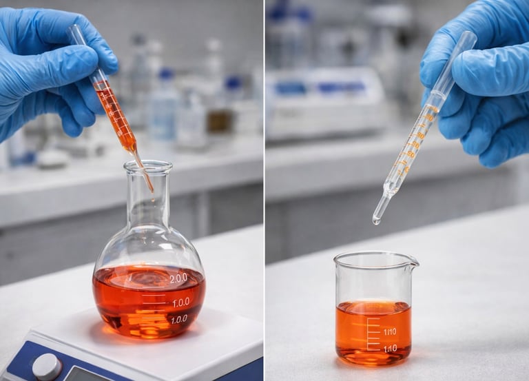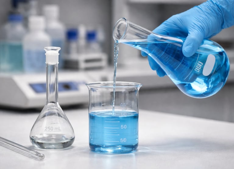 Elementos para preparación, dilución y manejo de soluciones líquidas.
