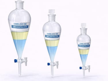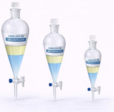 Separación de líquidos inmiscibles por diferencia de densidad.