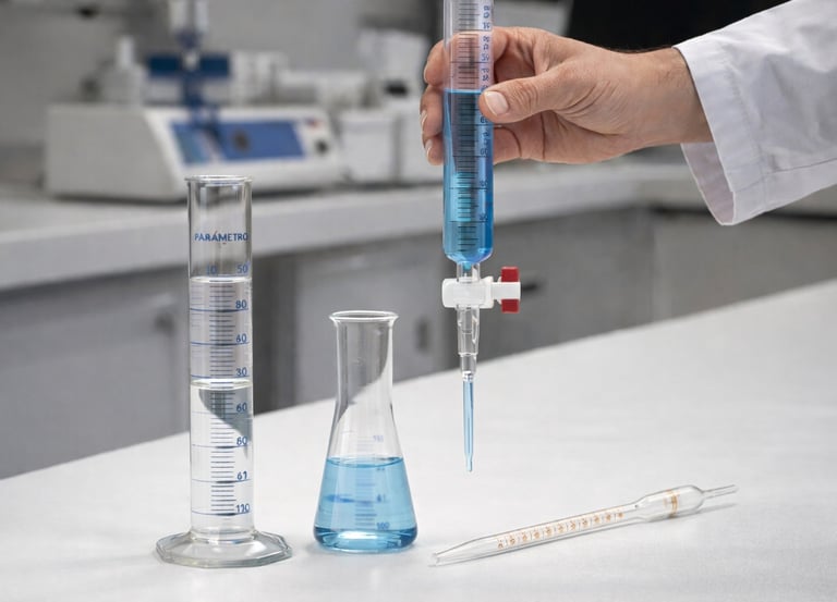 Instrumental para medición precisa y dosificación de líquidos en laboratorio.