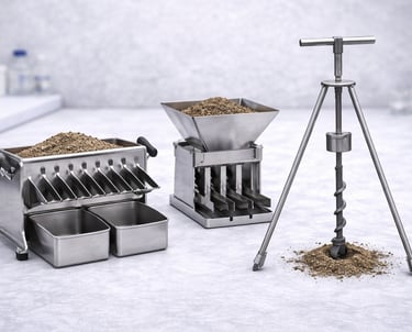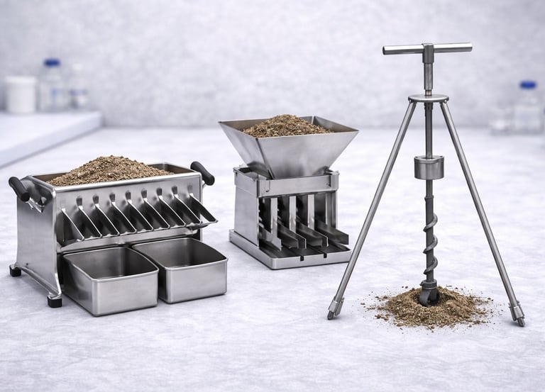 Equipamiento para obtención y reducción de muestras representativas en laboratorio y campo.