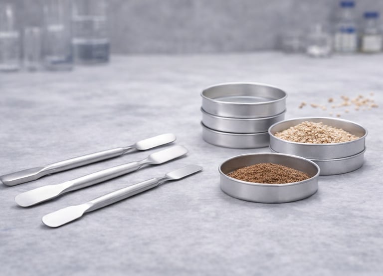Trituración y mezcla manual de muestras en laboratorio.